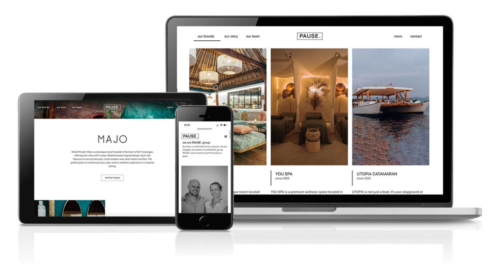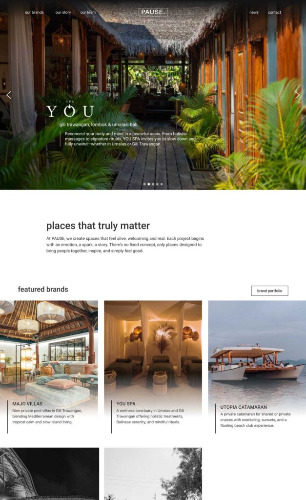 Multi-level design and development for a new website for a hospitality group based in Bali, Indonesia. Brand guidelines were provided from a graphic designer and we were responsible for the rest.